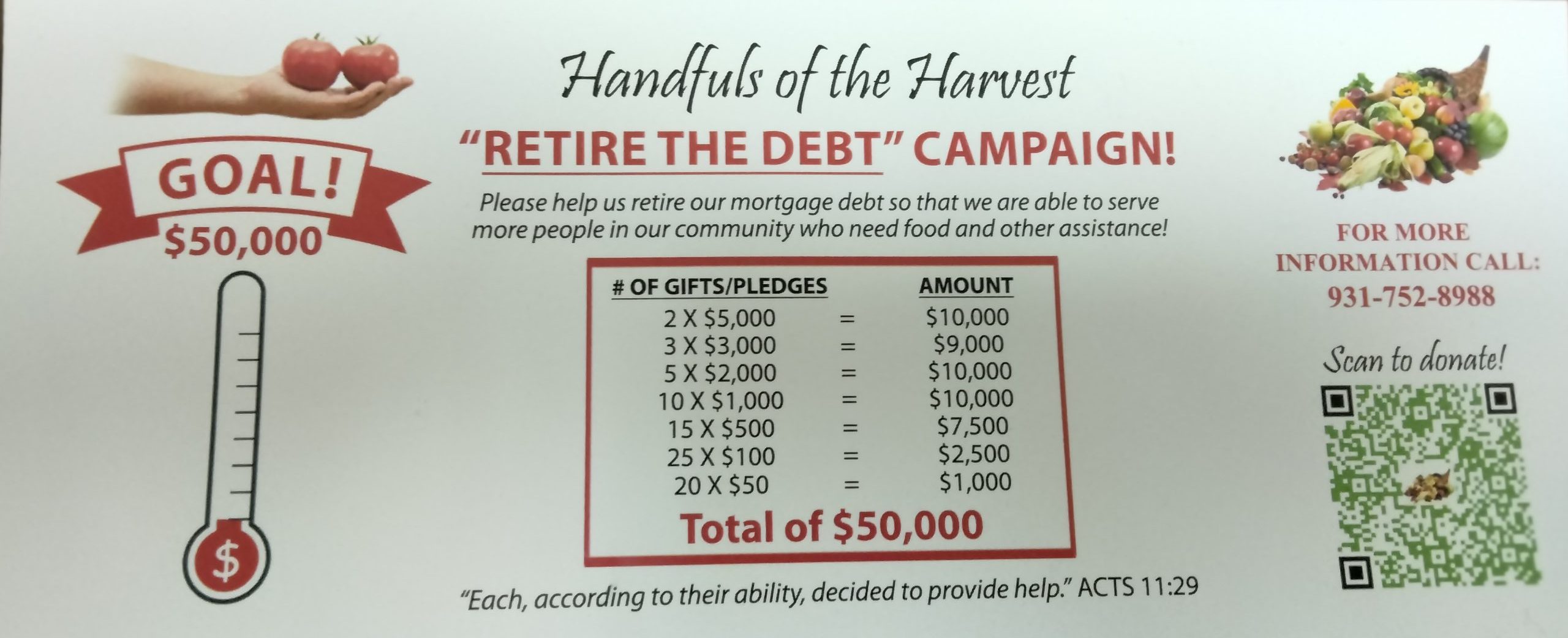 to retire the debt owed on the building housing the ministry. The overall goal is to raise $50,000.